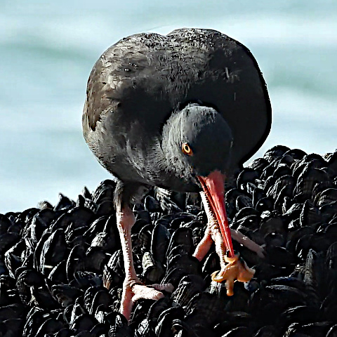 Here's a frame grab of a black oystercatcher chowing down. Watcb the clip to see him in action.
